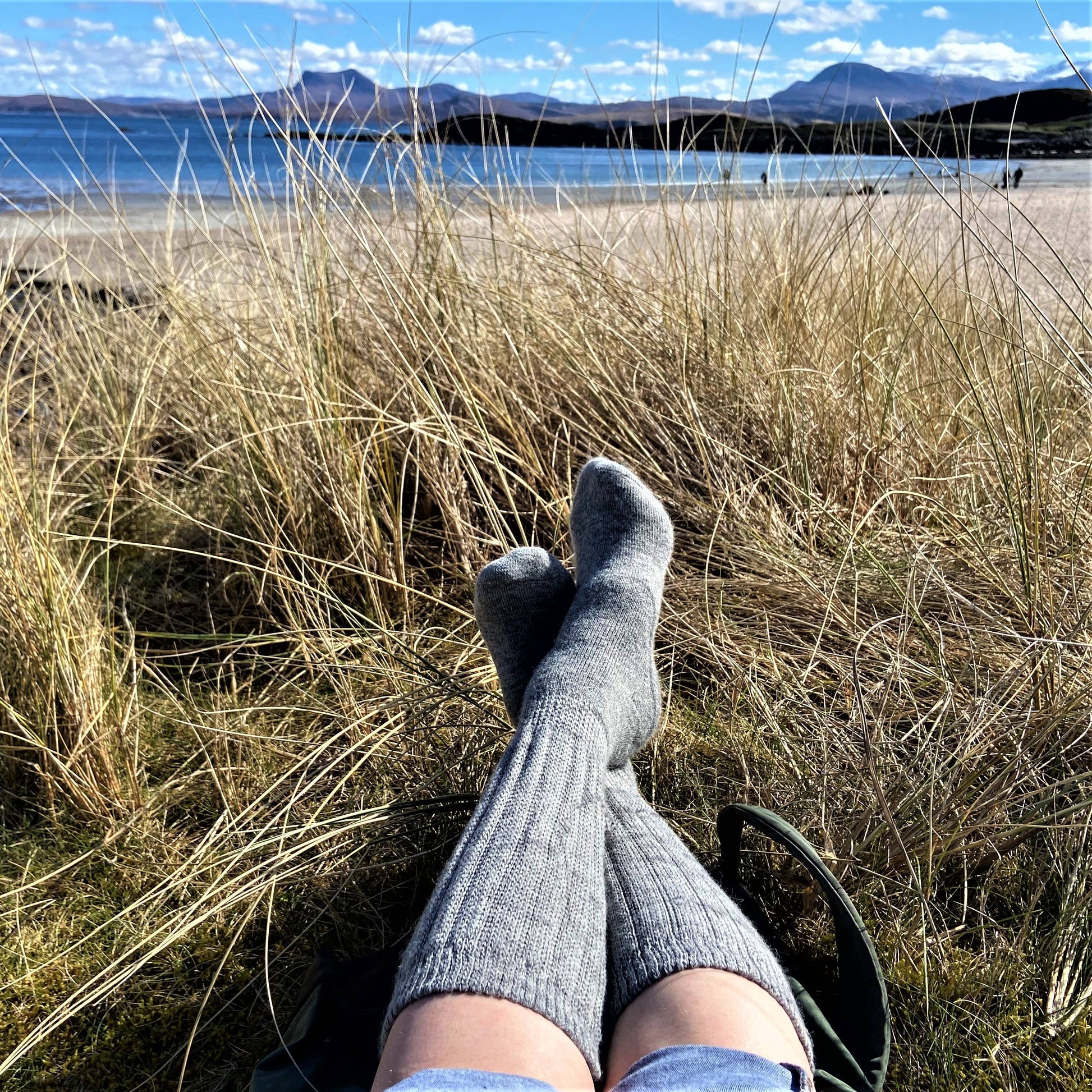 Samantha Holmes Rib Cushion Alpaca Socks are a must for every sock drawer. Designed for outdoor wear or as slouch socks for lounging around at home. Long lasting alpaca blend, insulating and extremely comfortable, they can be cold machine washed and dried. The alpaca content provides sweat-wicking properties and the sock is designed with just enough elastication to ensure a perfect fit and durable shape. A lot of our customers enjoy wearing them as bed socks!
