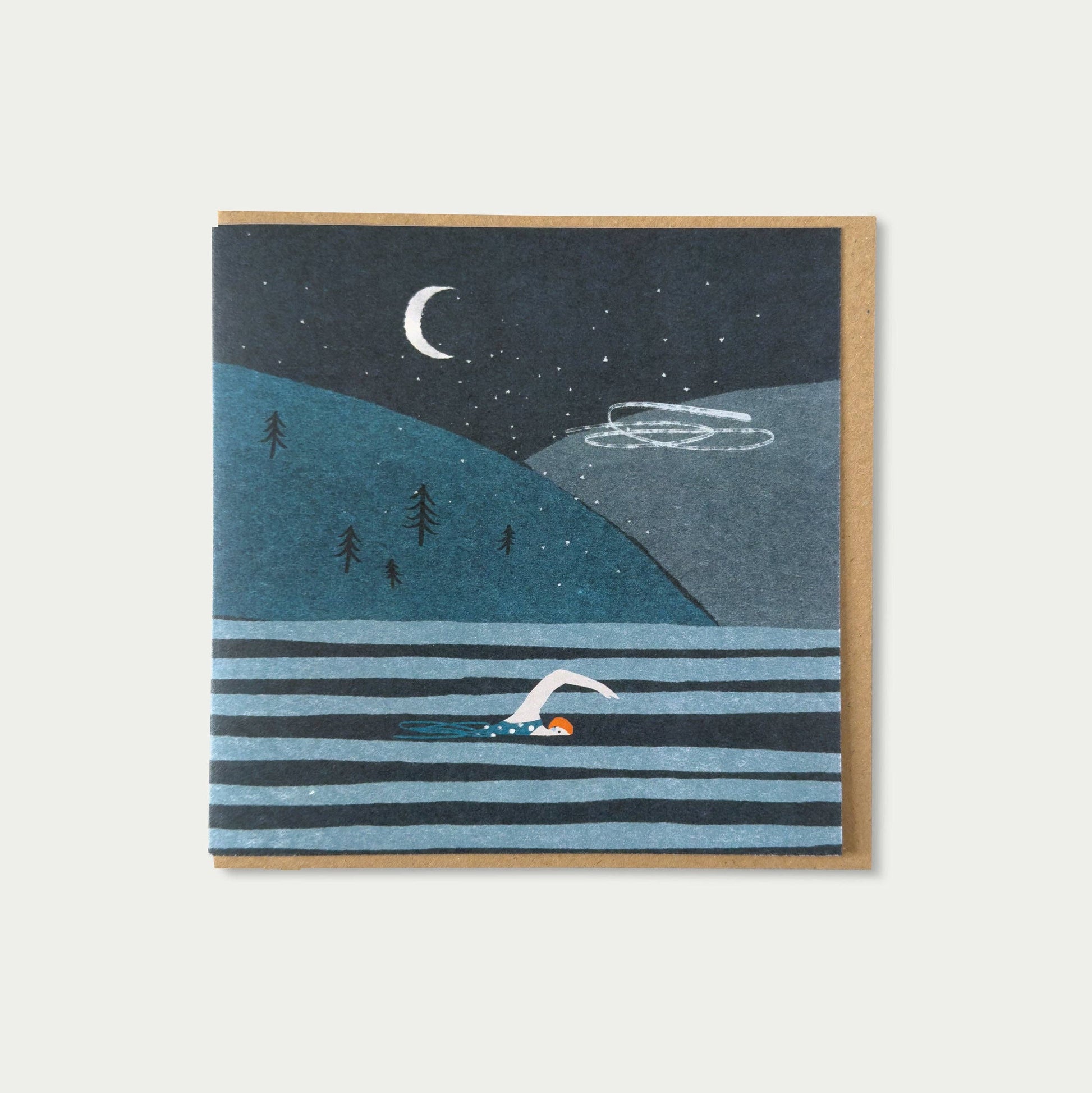 Illustrated Greeting Card featuring 'Night Swimming' artwork.