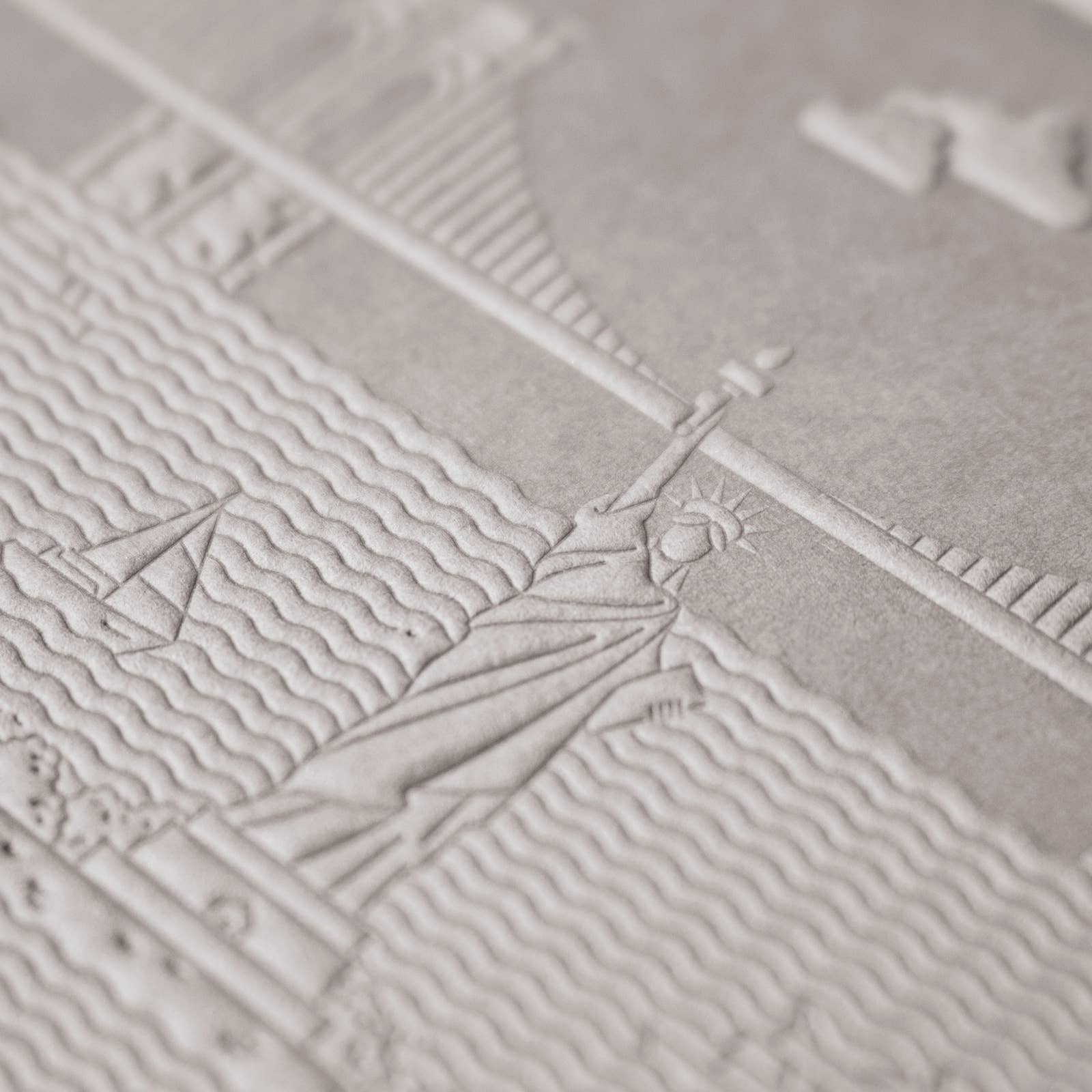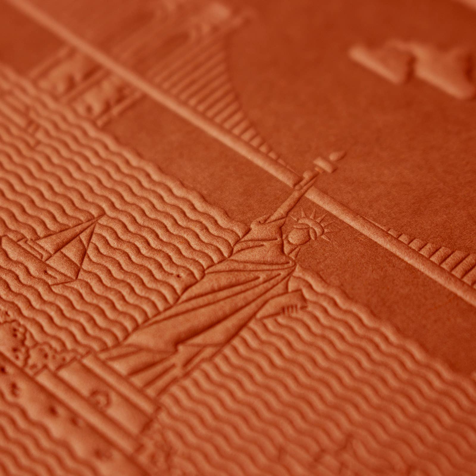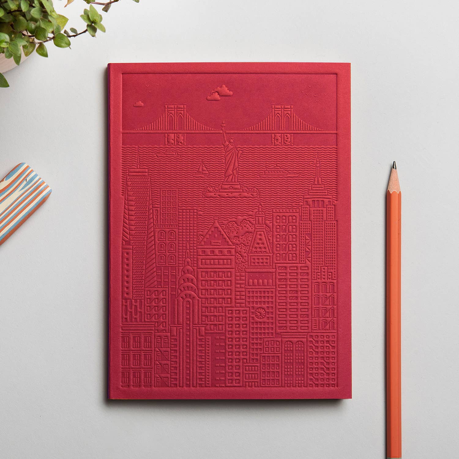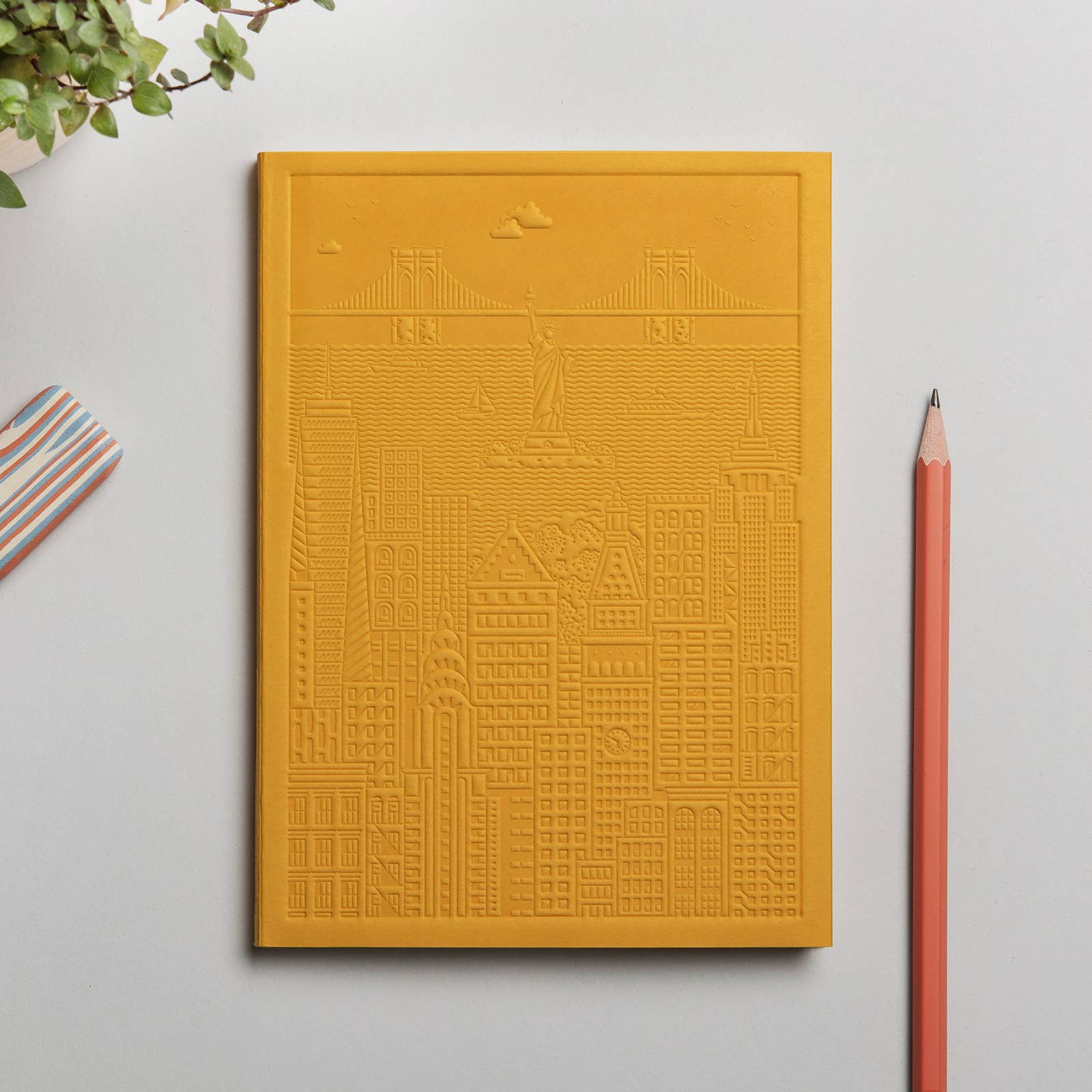 The New York Notebook by The City Works. The cover is hand-pressed in our studio in Vienna, leaving a lasting impression on the cover, and hopefully on you too. The spine is also embossed with the name of the city, with our logo on the reverse.
