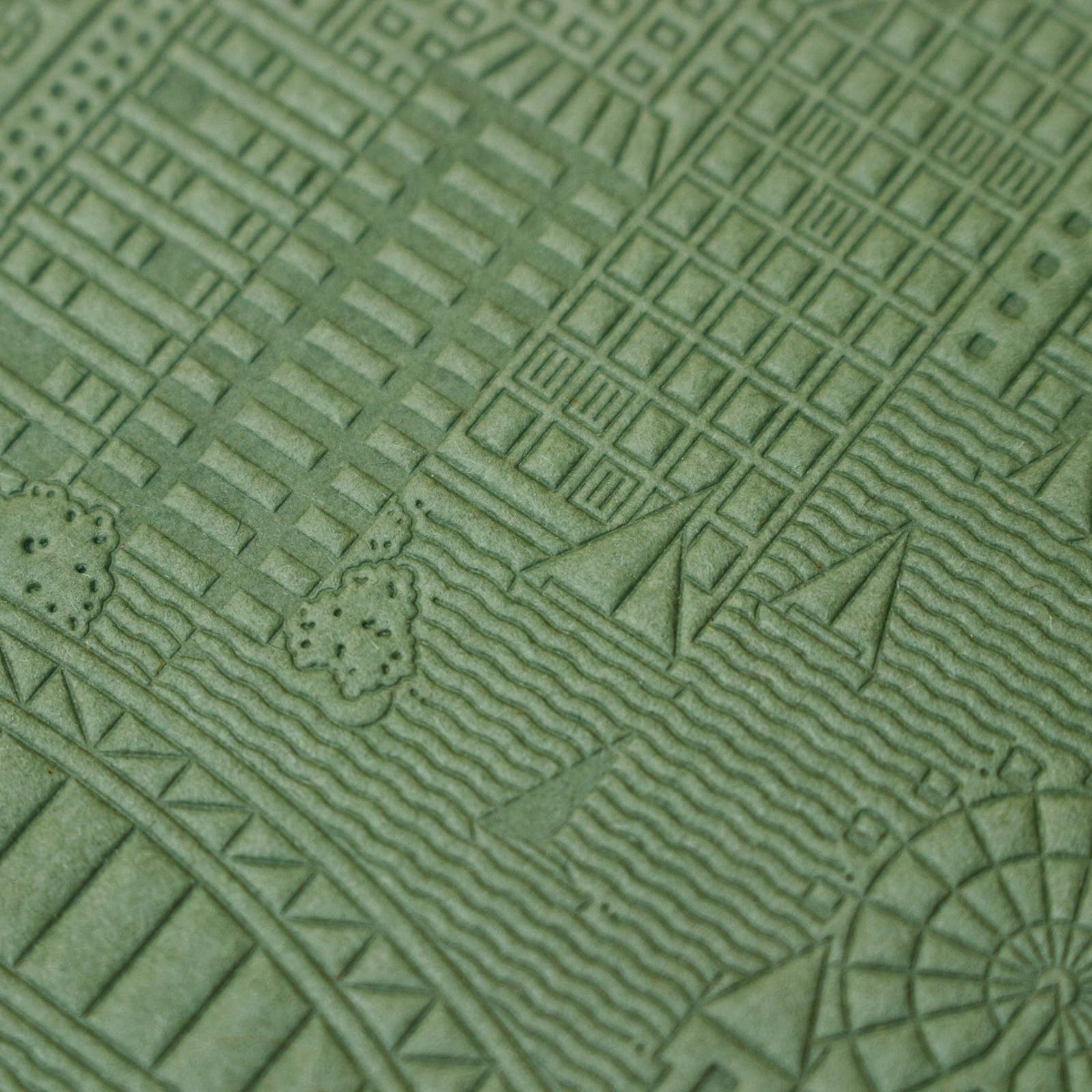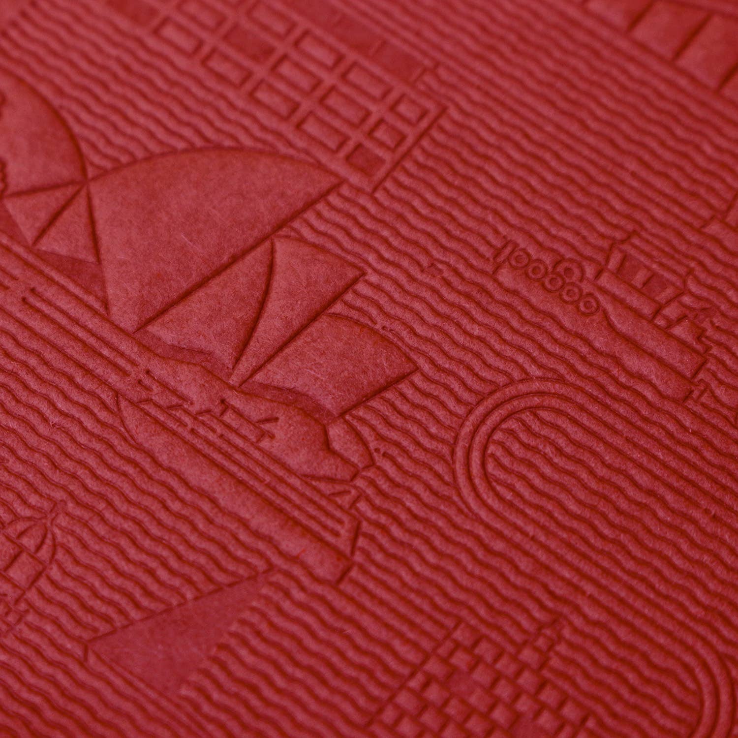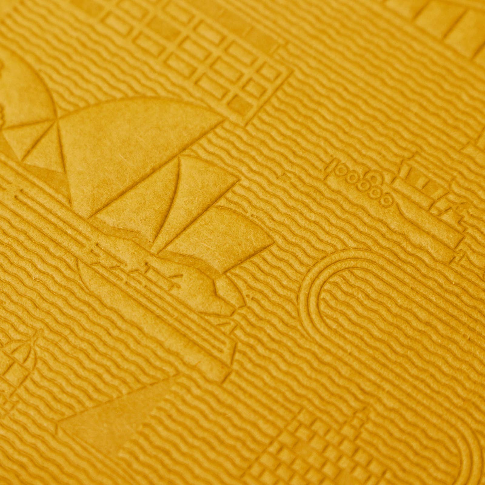 The Sydney Notebook by The City Works. The cover is hand-pressed in our studio in Vienna, leaving a lasting impression on the cover, and hopefully on you too. The spine is also embossed with the name of the city, with our logo on the reverse.